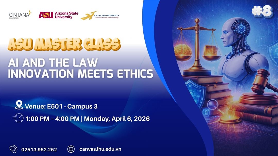 Trong bối cảnh trí tuệ nhân tạo (AI) đang thay đổi mạnh mẽ mọi lĩnh vực, ngành luật cũng không nằm ngoài xu thế này. Chương trình ASU Master Class: AI and the Law – Innovation Meets Ethics (Khi đổi mới công nghệ gặp gỡ đạo đức pháp lý) được tổ chức dành riêng cho sinh viên ngành Luật và Luật Kinh tế, nhằm cung cấp góc nhìn toàn diện về việc ứng dụng AI trong hệ thống pháp luật, đồng thời phân tích các vấn đề đạo đức và trách nhiệm liên quan. Đây là cơ hội để sinh viên tiếp cận kiến thức mới, nâng cao tư duy pháp lý trong kỷ nguyên số.