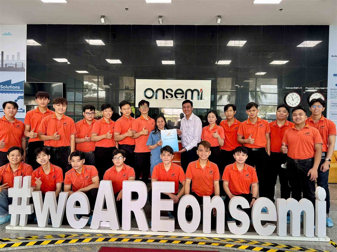 Tại buổi tham quan, sinh viên đã được đại diện Onsemi giới thiệu tổng quan về quy trình đóng gói (packaging) và kiểm định (testing) chip bán dẫn – những công đoạn quan trọng quyết định đến độ tin cậy, hiệu suất và chất lượng của sản phẩm trước khi xuất xưởng. Bên cạnh đó, sinh viên cũng có dịp quan sát trực tiếp dây chuyền sản xuất hiện đại, vận hành trong môi trường cleanroom tiêu chuẩn cao, nơi mỗi công đoạn đều được kiểm soát chặt chẽ bằng hệ thống tự động hóa tiên tiến.
