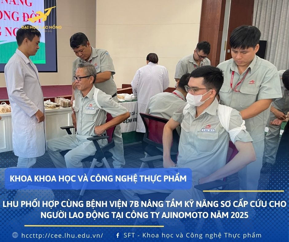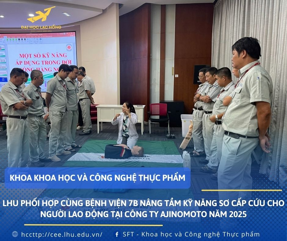 Từ tháng 9/2025 đến tháng 12/2025 khoa KH&CNTP cùng với bệnh viện 7B tổ chức 30 buổi tập huấn sơ cấp cứu dành cho đội ngũ người lao động tại Công ty Ajinomoto Biên Hòa.