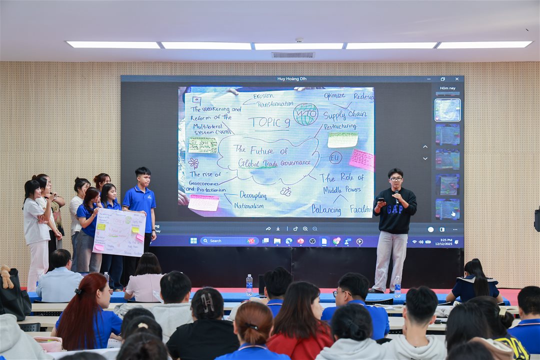 Giá trị lớn nhất mà sinh viên nhận được sau buổi học là khả năng hiểu rõ bối cảnh và các xu hướng thương mại toàn cầu hiện đại. Thay vì tiếp cận kiến thức một cách rời rạc, sinh viên được hướng dẫn để nhìn thấy bức tranh tổng thể, bao gồm cả những cơ hội tiềm năng và những thách thức mới đang hình thành. Việc nắm vững bối cảnh này giúp sinh viên ngành Quản trị Kinh doanh và Marketing xây dựng được nền tảng kiến thức vững chắc, từ đó tự tin hơn trong việc đưa ra các nhận định và quyết định kinh doanh trong tương lai.