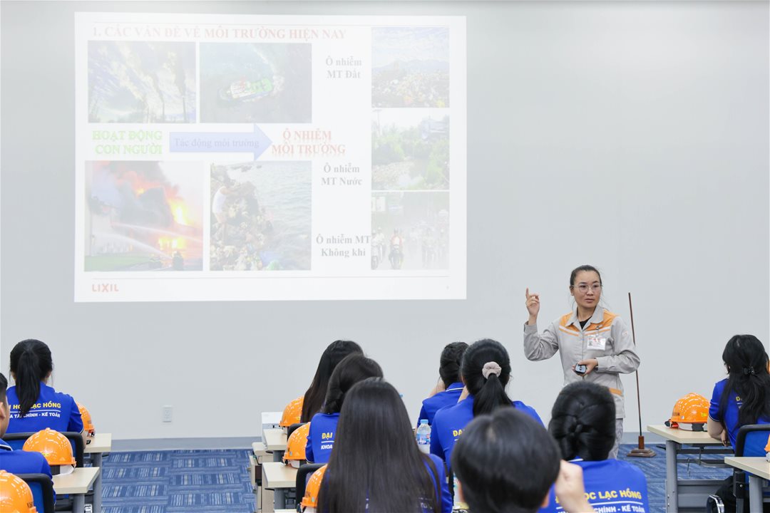 On the morning of October 9, 2025, the Faculty of Finance and Accounting, Lac Hong University, organized a field trip and practical learning session for students of class 23KT111 – Accounting major at Lixil Global Manufacturing Vietnam Co., Ltd., located on D1 Street, Long Duc Industrial Park, Binh An Commune, Dong Nai Province.