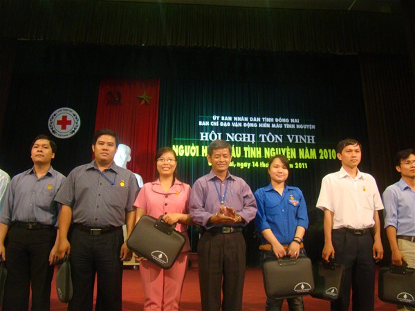 In order to encourage and display the spirit of voluntary blood donation of individuals and collectives from across the province, on June 14, 2011 Dong Nai provincial Red Cross Association solemnly held a ceremony to honor individuals for their donation efforts (from 3 times above) at the provincial Conference Centre. At the ceremony, 45 individuals as teachers, union members, and students from Lac Hong University were honored including Tran Quang Hop - Class 11KT501 (10 times), Ms. To Thi Lan Phuong – Department of Environmental Biotechnology(7 times), Mr. Nguyen Viet Hung – Vice Manager of Student Housing (5 times), Mr. Le Son Quang –Secretary of Youth Union, Mr. Đang Nhu Toan – Information Technology Department, Chau Ngoc Tuong Van - Class 07CH111, Le Thi Kim Oanh - Class 08DH112, Pham Quoc Bao - Class 08SH112, Ha Thi Thuy Anh - Class 08TP113 (5 times) and 36 other union members and students (3 times).