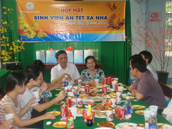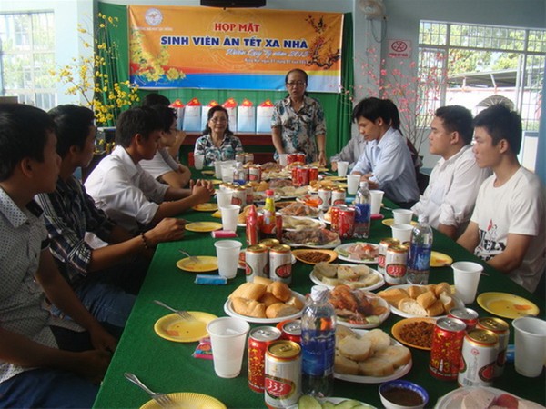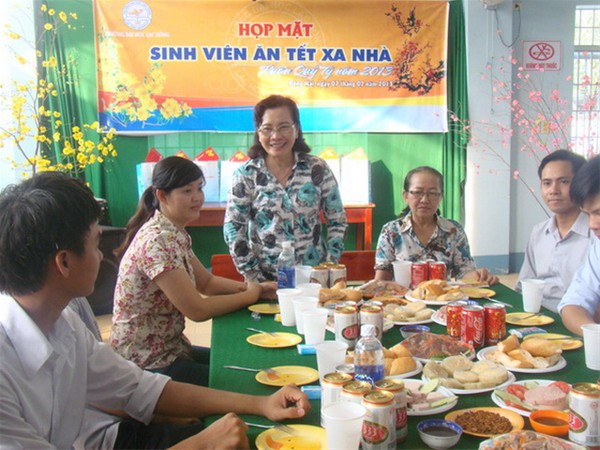 In the afternoon of February 7 (lunar 27),  Lac Hong University’s Youth Union – Student Association in cooperation with the Dormitory Management Board  held a meeting  with students who are unable to return home for Tet, to help them get over their homesickness and enjoy a happy Tet. Attending the program was Meritorious Teacher Dr. Nguyen Thi Thu Lan – Vice Rector, Dr. Nguyen Van Nam – Vice Rector, Ms. Le Thi Hieu – Head of the Dormitory Management Board, Ms. Nguyen Ho Xuan Huong – Head of Student Affairs, comrade Le Son Quang – Secretary of Youth Union and comrade Tran Tien – Chairman of Student Asscociation.