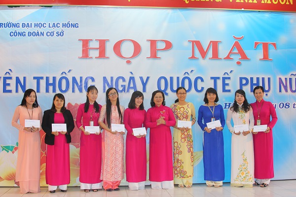 To close the meeting, the University Management Board praised 40 typical women for their great contributions to the development of the University and Trade Union. Through the meeting, the Organizing Board wished to help to speak highly of women's roles in education and training of LHU and speed up the movement "Good at office work, Responsible for household chores" (Gioi viec nuoc, Dam viec nha).