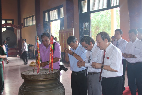 Dr. Diep Cam Thu (first on the right, 1st row) and delegates offer incense at Tran Bien Temple of Literature.