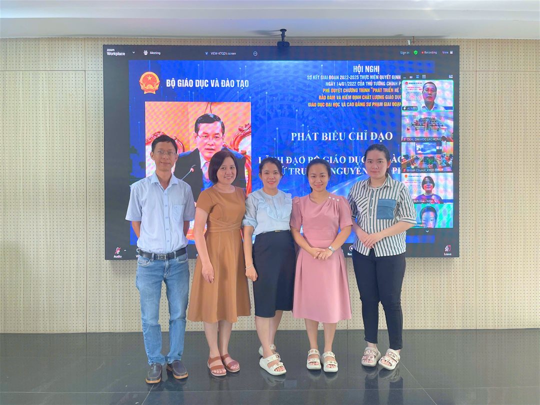 The mid-term review conference on the implementation of Decision No. 78/QĐ-TTg, issued by the Prime Minister approving the “Program on Developing the System for Quality Assurance and Accreditation in Higher Education and Pedagogical Colleges for the 2022–2030 Period”, was held online under the organization of the Department of Quality Management (Ministry of Education and Training), with participation from seven higher education institutions nationwide.