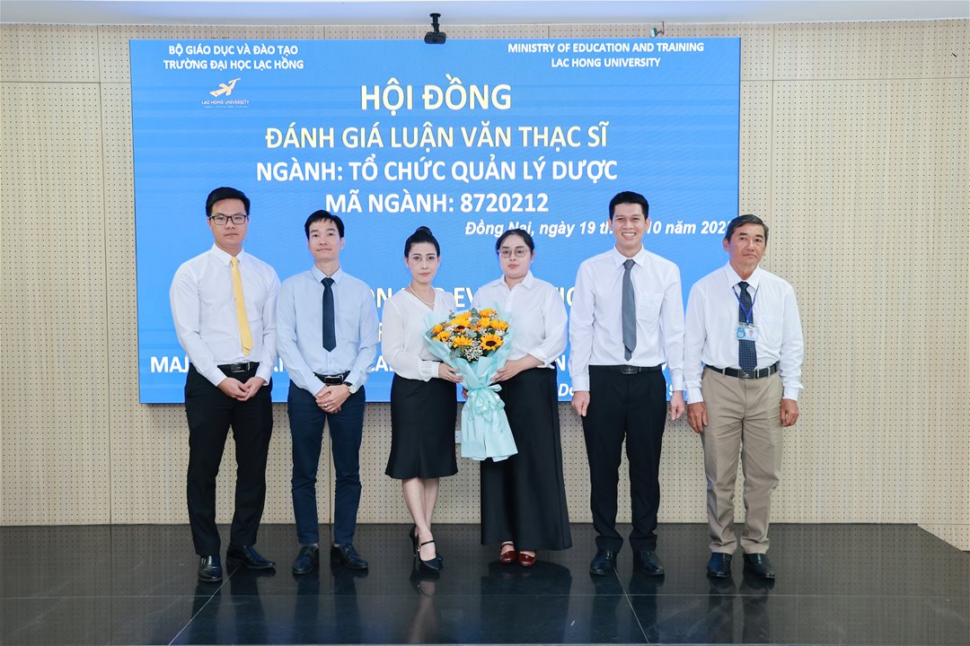 Ngày 19 tháng 10 năm 2025, tại phòng B203 cơ sở 1 của Trường Đại học Lạc Hồng (LHU), 06 học viên thuộc ngành Tổ chức quản lý dược đã hoàn thành phần trình bày và bảo vệ luận văn thạc sĩ trước hội đồng chuyên môn. Buổi bảo vệ diễn ra trong không khí trang nghiêm, học thuật và chuyên nghiệp, đánh dấu cột mốc quan trọng trong quá trình đào tạo sau đại học tại nhà trường.