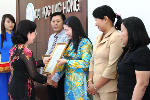 Chị Ngọc đóng góp ý kiến cho trường và nhận thư cảm ơn từ lãnh đạo Nhà trường trong hội thảo gặp gỡ doanh nghiệp và cựu sinh viên Lạc Hồng tháng 2/2012